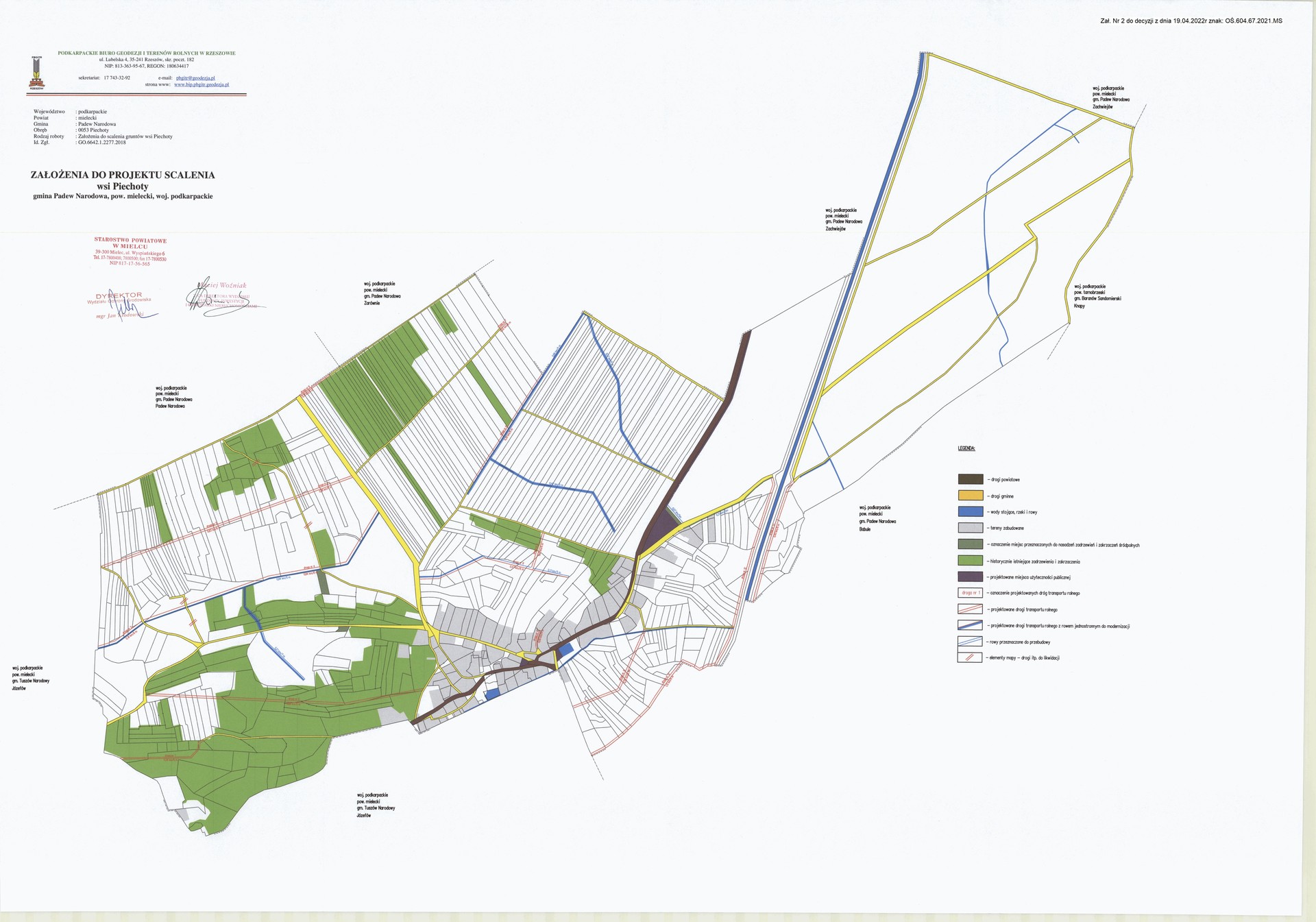 Działając na podstawie art. 49 ustawy z dnia 14 czerwca 1960 roku Kodeks Postępowania Administracyjnego (tekst jednolity Dz.U. z 2021r,. poz. 735 ze zm.) oraz art. 74 ust. 3 i art. 85 ust. 3 ustawy z dnia 3 października 2008 roku o udostępnianiu informacji o środowisku i jego ochronie, udziale społeczeństwa w ochronie środowiska oraz o ocenach oddziaływania na środowisko (tekst jednolity Dz.U. z 202 Ir., poz. 2373 ze zm.) zawiadamiam, że w dniu 19.04.2022r. została wydana decyzja znak: OS.604.67.2021.MS o środowiskowych uwarunkowaniach zgody na realizację przedsięwzięcia polegającego na: scaleniu gruntów w miejscowości Piechoty, gmina Padew Narodowa, o powierzchni 310,08 ha.